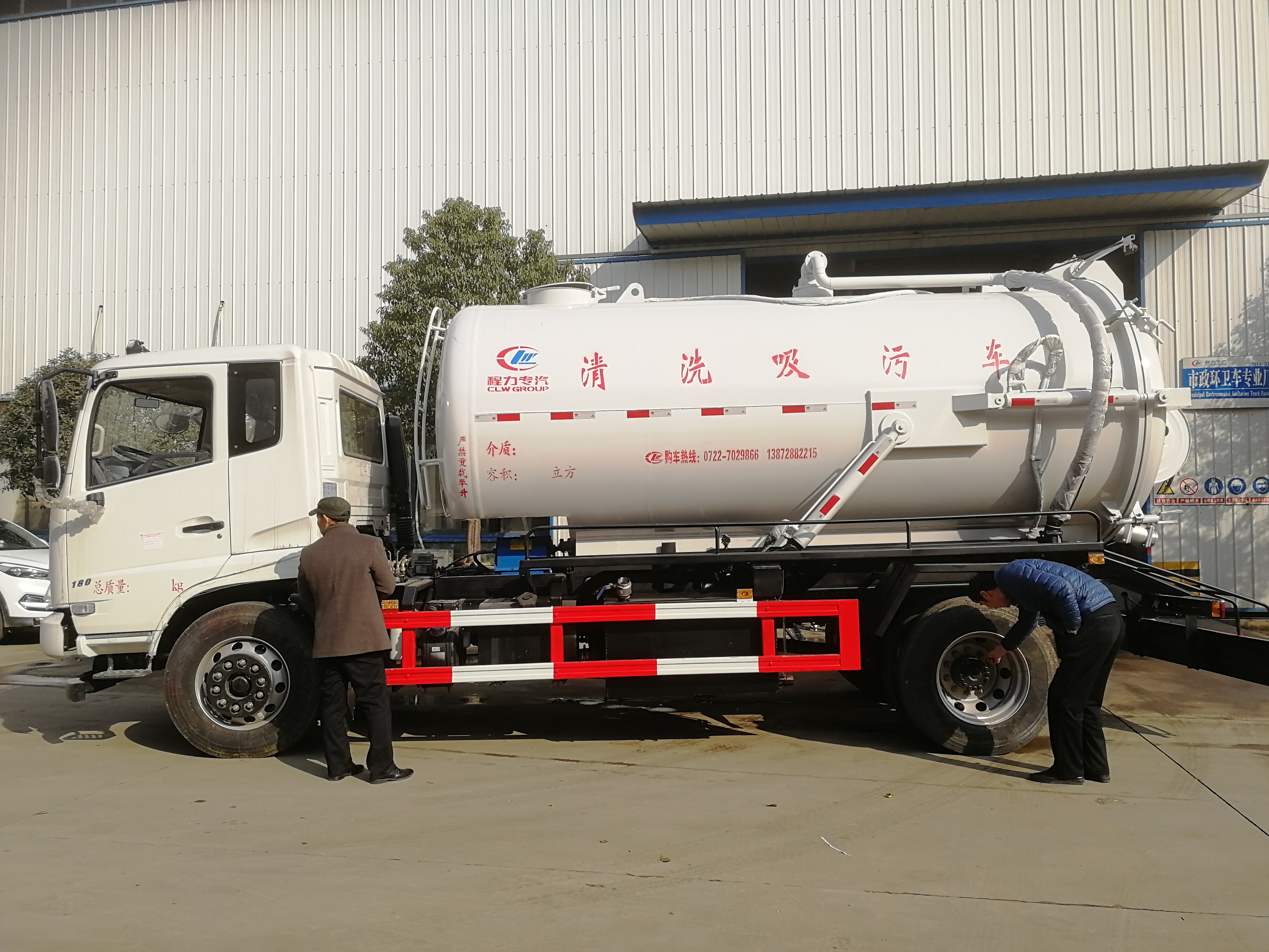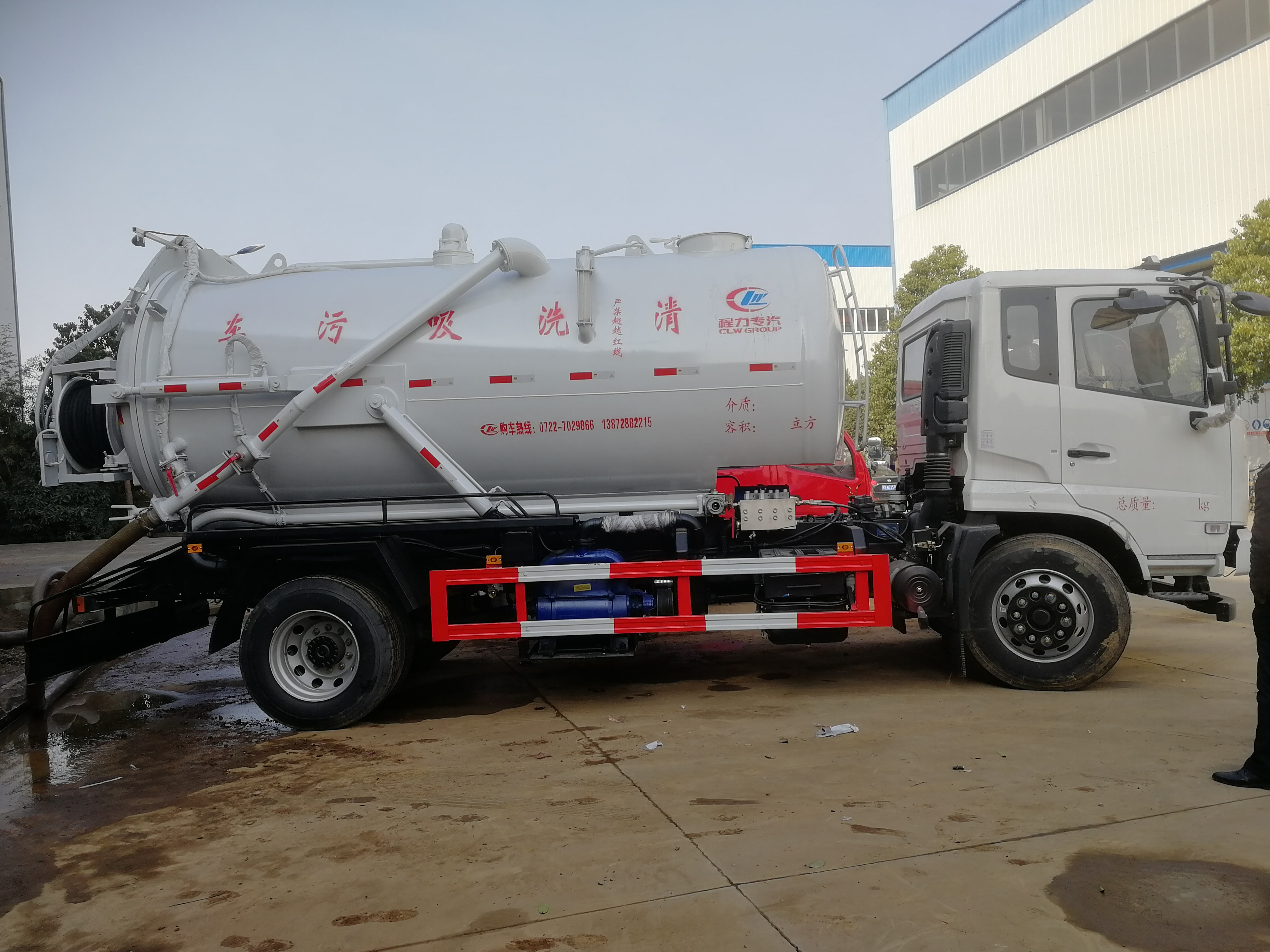 湖北程力國五東風天錦清洗吸污車(又名聯合疏通車,清水罐3.6方,吸污罐10方)。整車型號:CLW5165GQWD5,底盤型號:DFL1160BX1V,軸距4700mm,康明斯6缸180馬力,原廠空調,ABS,帶方向助力,275真空胎。帶廖素盒。