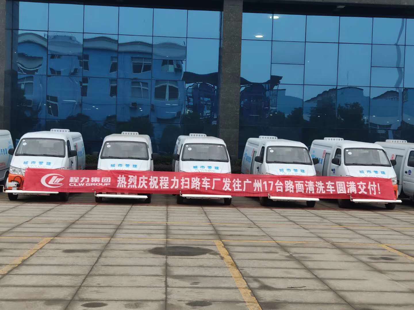 【湖北程力近期批量訂單】發(fā)往廣州17臺路面清洗車交付成功!!