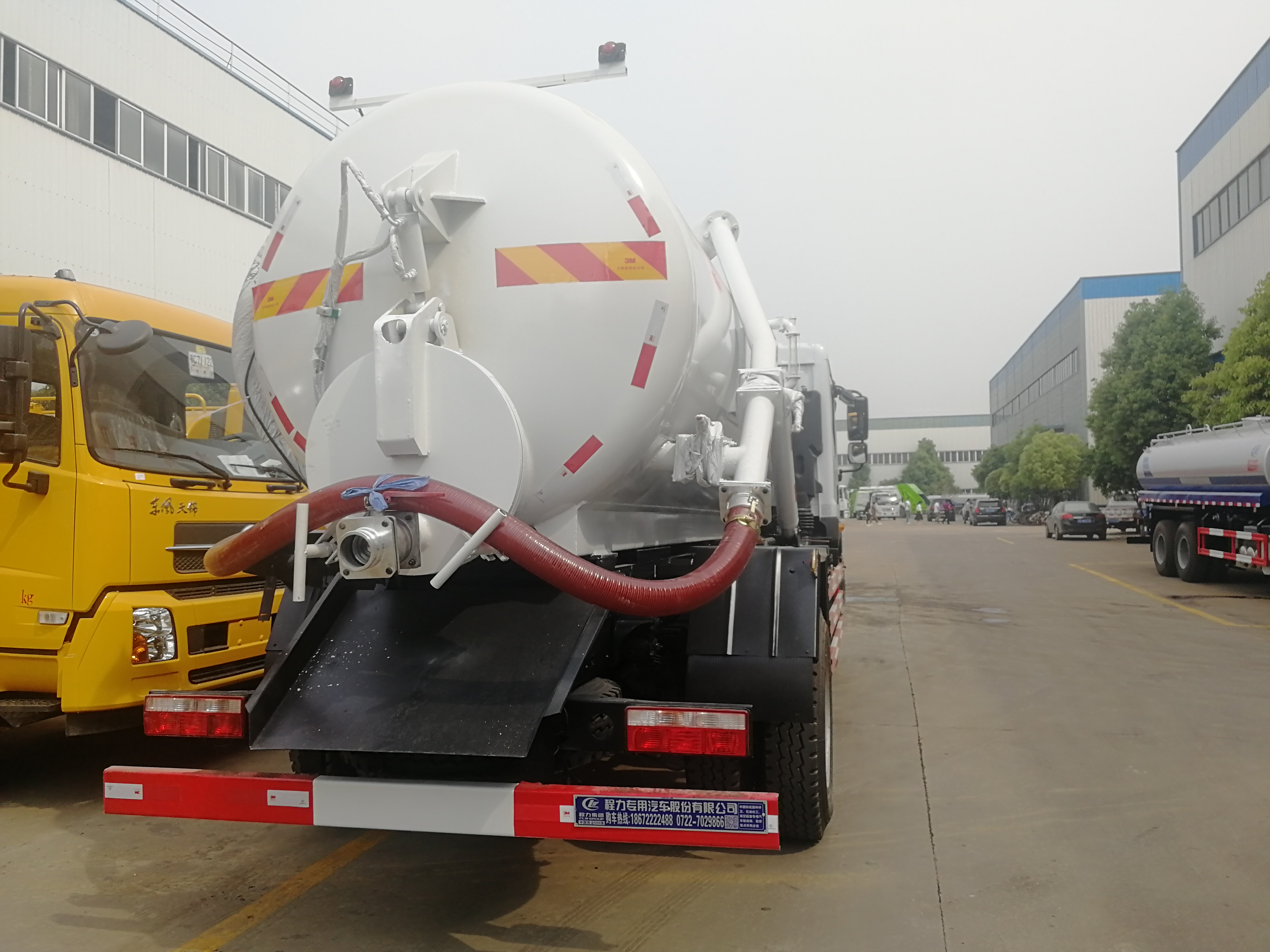 吸污車專用部分由取力器、傳動軸、真空吸污泵、壓力罐體、液壓部分,管網系統、真空壓力表、視糞窗、洗手裝置等組成,隨車配置大功率真空吸污泵和優質液壓系統,罐體封頭一次壓鑄成型、罐體可后開、雙頂自卸。罐內污物可通過后蓋直接傾倒,具有真空度高(比吸糞車的吸力更大)、噸位大、效率高、用途更廣泛的特點。