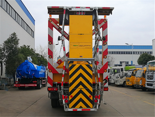 湖北程力防撞緩沖車的防撞緩沖吸能模塊主要由車載防撞緩沖墊和導(dǎo)向標(biāo)志架組成,充當(dāng)施工作業(yè)車輛后方的緩沖衛(wèi)士。如若發(fā)生追尾事故,能夠在肇事車輛和前方施工作業(yè)區(qū)域之間構(gòu)建一個緩沖區(qū)域,通過機具結(jié)構(gòu)變形吸收撞擊的能量,最大限度地降低被保護人員及設(shè)備遭到碰撞的幾率。