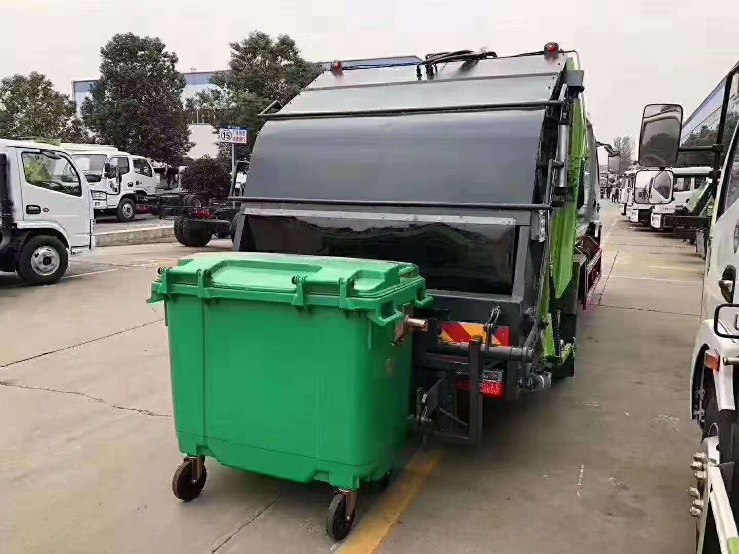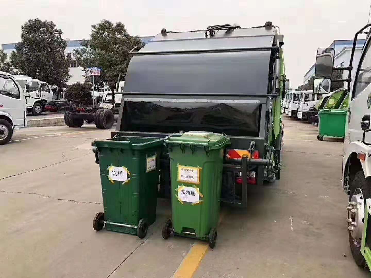 湖北程力 國六東風8方后裝式壓縮垃圾車,多功能掛桶翻轉機構,可掛240升鐵桶,240升塑料桶,660升塑料桶,360升圓鐵桶,氣動密封蓋,雙聯液壓油泵,想怎么用可以根據您的選擇,下面是湖北程力國六壓縮垃圾車幾種常規掛桶型號圖片展示:
