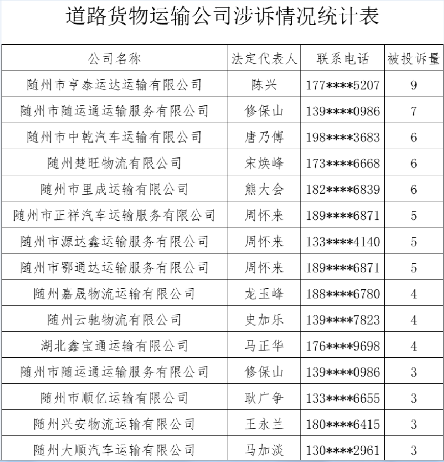 為了進(jìn)一步營造公平、公正、有序的專汽市場(chǎng)生產(chǎn)經(jīng)營環(huán)境,規(guī)范道路運(yùn)輸市場(chǎng)經(jīng)營秩序,切實(shí)維護(hù)消費(fèi)者合法權(quán)益,曾都區(qū)專汽整頓專班經(jīng)對(duì)2023年1-7月份專汽行業(yè)道路貨物運(yùn)輸公司掛靠涉訴情況進(jìn)行梳理,現(xiàn)按相關(guān)要求通報(bào)如下:
