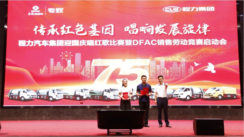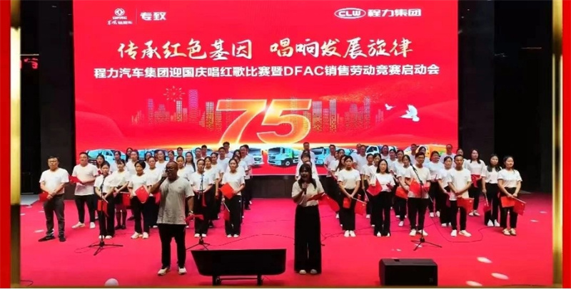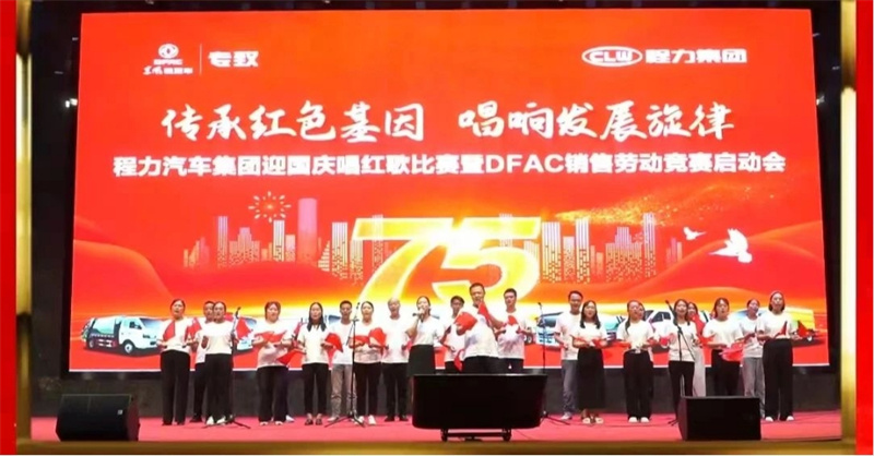 ,9月29日,為慶祝中華人民共和國建國75周年,程力汽車集團攜手東風股份有限公司,在隨州市曾都區(qū)程力汽車工業(yè)園文化廣場程力大舞臺,隆重舉行迎國慶唱紅歌比賽暨DFAC銷售勞動競賽啟動會,