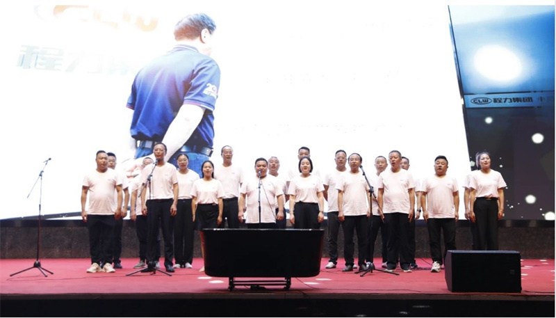 程力汽車集團中高層領(lǐng)導上臺集體合唱《程力之歌》,分享與祖國共榮光的豪邁與榮耀。