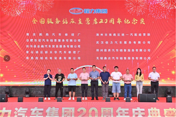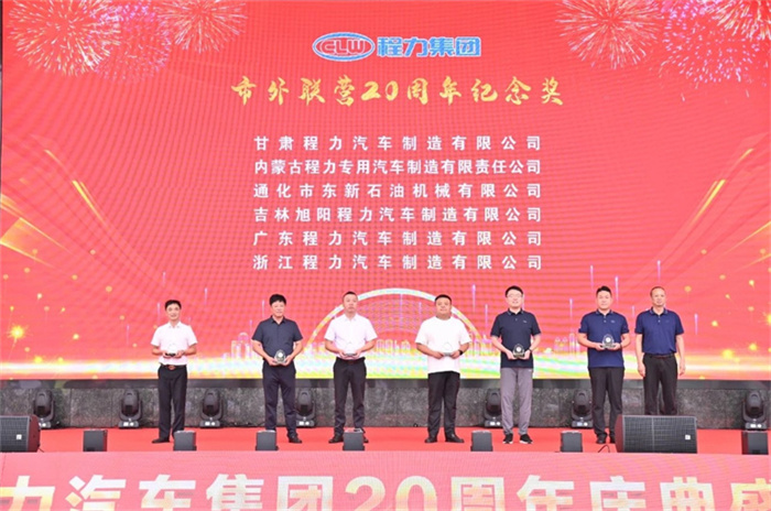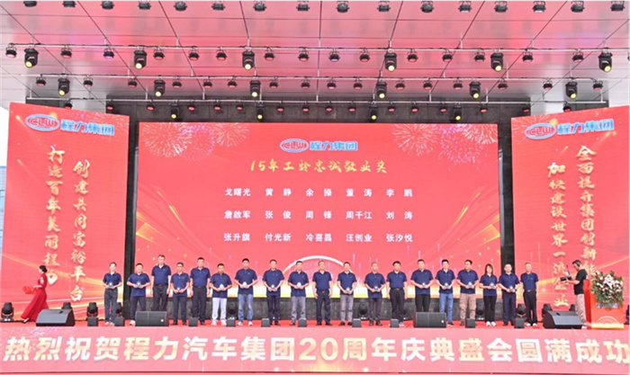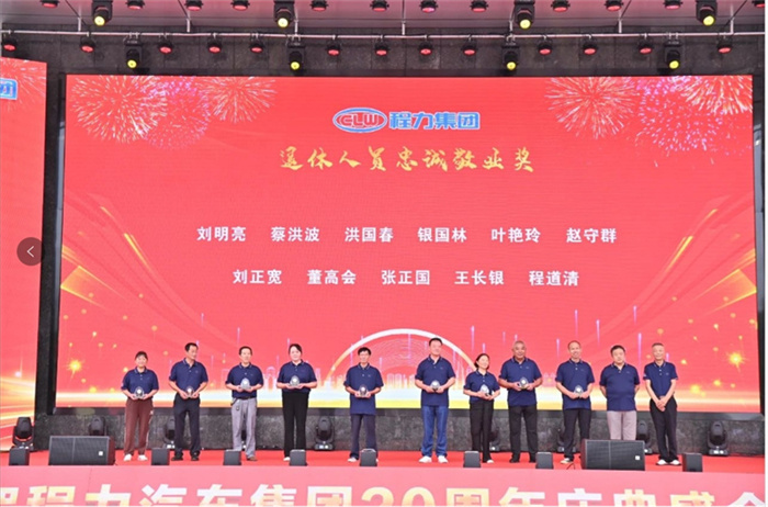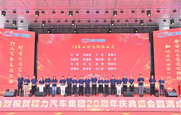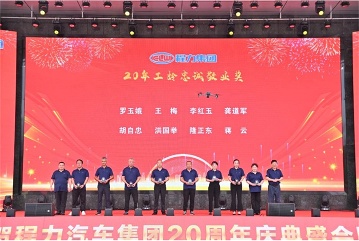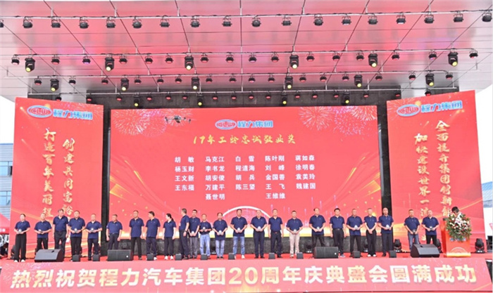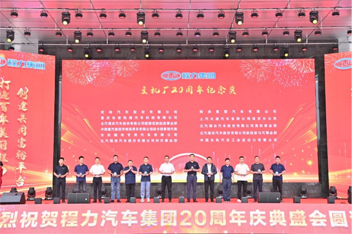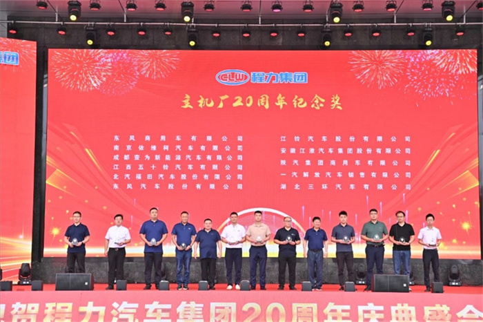 賡即,集團公司董事局主席程道國、董事長程阿羅向來自全國參加慶賀的主機廠代表贈予了程力20年“合作紀念獎”獎章。