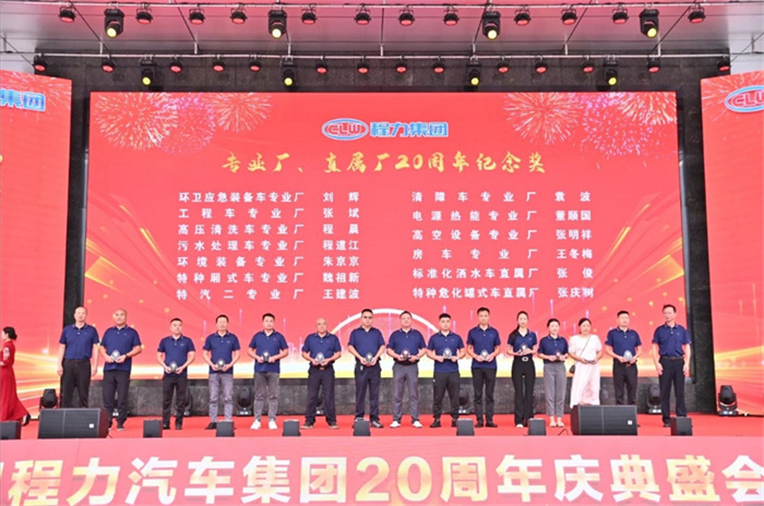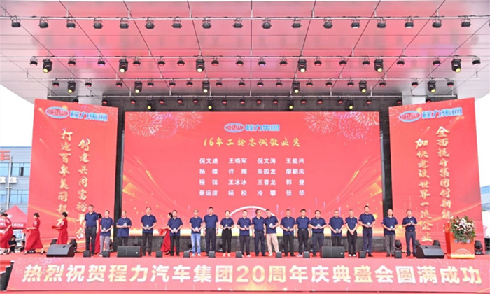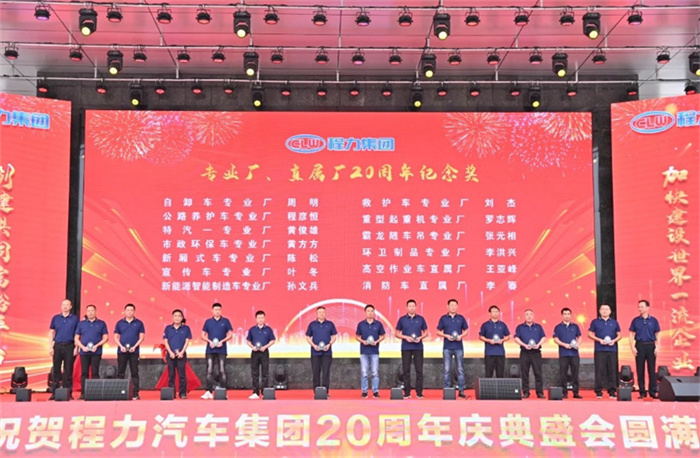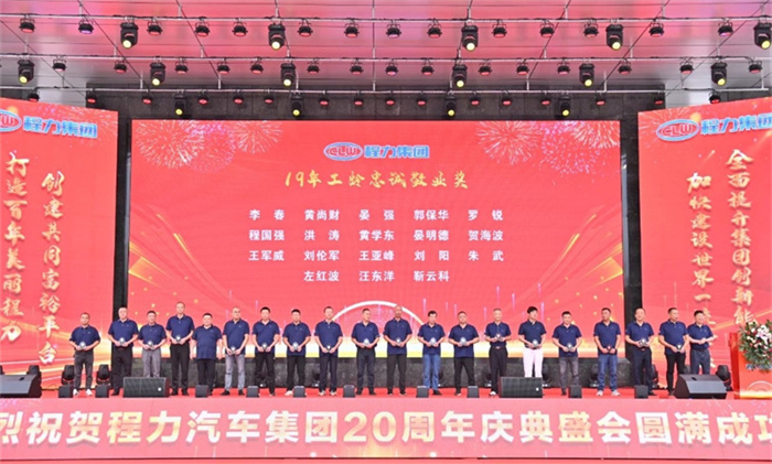 程主席致詞贊揚道:程力人二十載風雨兼程,二十載砥礪奮進,全體員工敢于創新勇立潮頭,心無旁騖專注汽車制造,不忘初心、肩負使命、奮斗不止,程力人是“程力精神”的創造者、弘揚者,是公司發展的建設者和主人翁;二十年來,程力從無到有、從弱到強,這一發展壯大的絢麗篇章,記載了程力人為中國專汽之都增光添彩的奮斗歷程;在20年的開拓征程中,程力人群策群力、攻堅克難,打贏了一個又一個攻堅戰,在汽車制造和應急裝備領域,深耕沃土,實現了跨越式的高速增長,奠定了專汽領軍地位,豎立了行業豐碑,程力品牌馳名中外、享譽世界,老一輩程力人為此付出了卓越的貢獻。