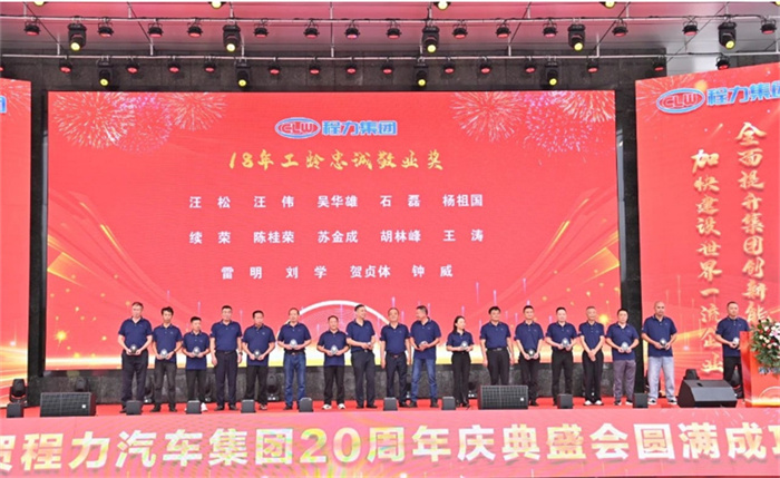 當我們攜起手來,總有溫暖的臂膀在支撐;一代一代程力人薪火相傳,兢兢業業,開拓創新,奮發圖強,鑄就了今日輝煌,程力汽車集團公司為15年至18年工齡獲得忠頒發了誠敬業獎。