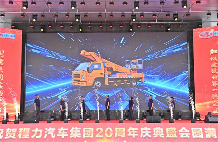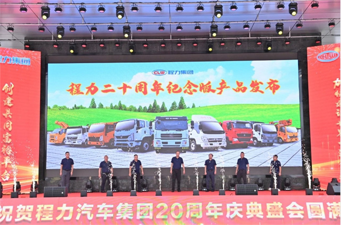 為全面提升程力汽車集團產品質量和品牌效果,助力和豐富集團20周年慶典,自4月啟動“程力集團20周年慶紀念版產品評選”活動以來,廣大研發、生產人員,精心設計、用心打造,六個子公司開發出16款優秀亮點產品,現特別推出其中12款產品,授予“20周年慶紀念版產品”榮譽稱號;程力汽車集團總經理朱武攜商用車公司總經理倪文進、應急公司總經理汪東洋、專汽公司總經理成向陽、特車公司總經理汪創業、汽車公司總經理程錦濤、隨車裝備公司常務副總經理方淙,登臺發布20周年紀念版新產品啟動儀式。