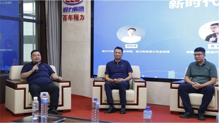 分論壇之一:程力汽車集團董事長程阿羅,集團公司副總經理、程力新能源汽車制造有限公司倪文濤主持了“新時代、新能源、新未來”論壇。