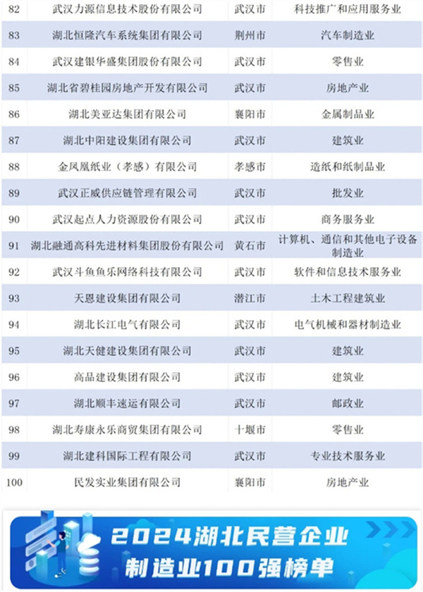 2024湖北民營企業(yè)百強(qiáng)榜單發(fā)布