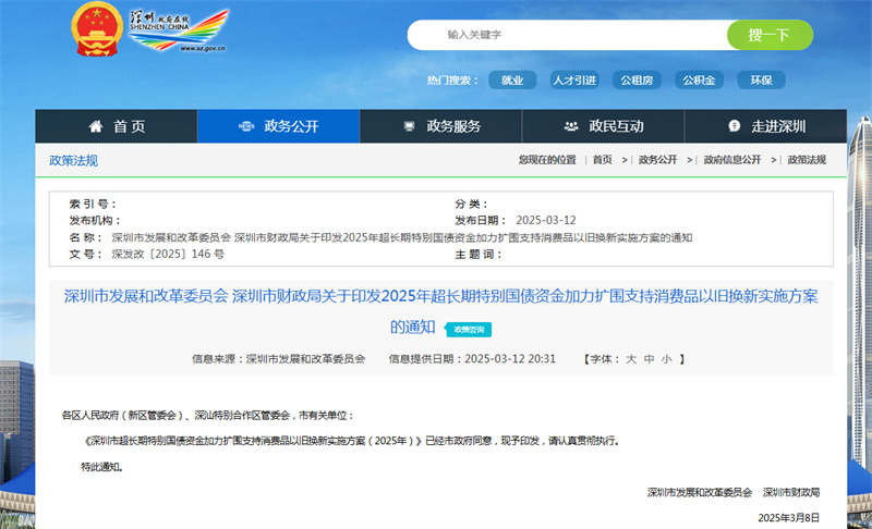 3月14日 深圳啟動以舊換新實施方案