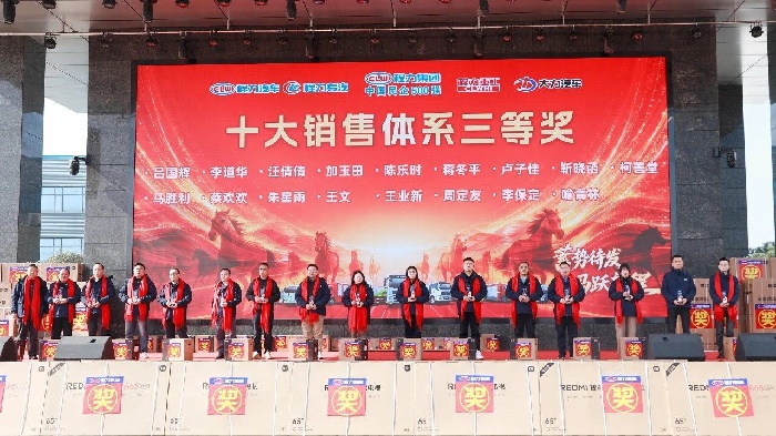 程力的每一步發展,都離不開合作伙伴的鼎力支持與攜手同行。接下來頒發的是“最佳供應商”獎項,此榮譽授予在物料品質、交付效率、合作協同中表現優異的合作伙伴,他們是程力產業鏈上的重要伙伴,更是集團高質量發展的堅實后盾。 銷售與經營齊飛,服務攜創新共贏! 銷售與經營體系表彰重磅登場。從金牌跟單員到十大銷售體系各獎項,從經營激勵獎、進步獎到貢獻獎,階梯式榮譽與豐厚獎品——米家冰箱、空氣炸鍋、REDMI電視、筆記本電腦乃至出國游,充分彰顯集團以績論獎、重獎功臣的鮮明導向,激勵全員勇攀業績高峰。