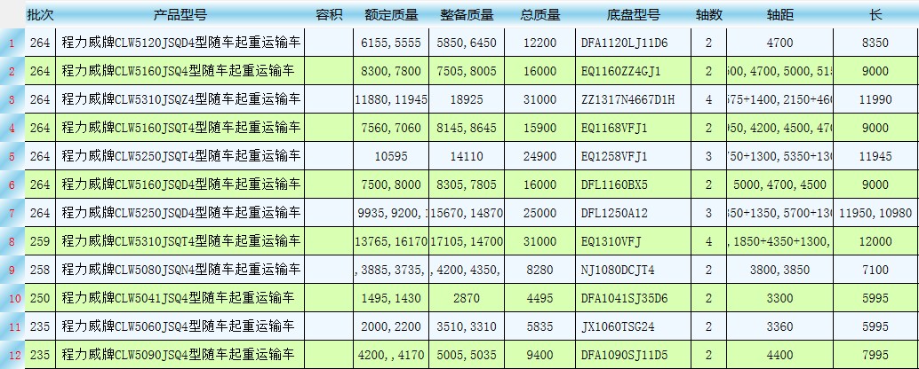湖北程力國四隨車吊程力隨車起重運輸車】有哪些公告參數有哪些,可以從下表可以看出