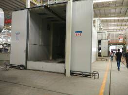 灑水車上需要做烤漆的部件,進入烤漆流水線車間都是先進行噴丸處理,消除該部件在制程過程中的刮傷,以保持產品表面處理后的美觀,從而極大程度地改善該部件的抗疲勞強度,延長安全工作壽命。然后進去噴漆室做底漆,做完底漆就開始噴漆,最后進入烘干室對其進行干燥處理就完工了。這就是我程力專用汽車股份有限公司灑水車烤漆流水線車間的生產流程,這些流程都是全自動化的操作流程。