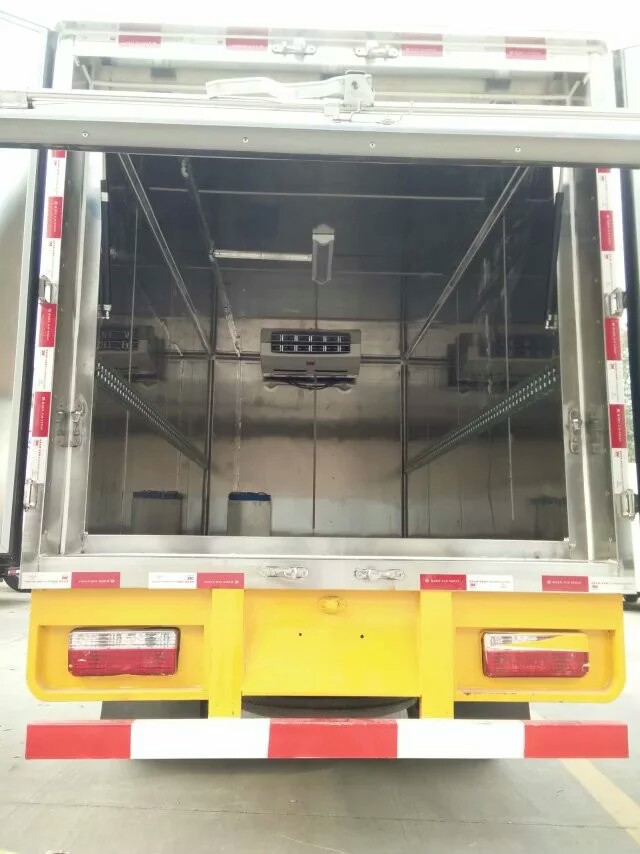 配備東風多利卡經典1730駕駛室,朝柴100馬力,2噸前橋,3.5噸后橋,萬里揚5檔變速箱,700鋼絲胎,氣剎,動轉,ABS。車廂為密閉式結構,內腔材料為不銹鋼板,防銹、防水耐腐蝕、易清洗和。車廂內部裝有低溫殺毒,紫外線殺毒,噴霧殺毒設備,可隨時對車廂內部進行。廂體兩側設有桶固定裝置,保證車輛緊急啟動、停車或事故時廢棄物收集桶不會和翻轉。