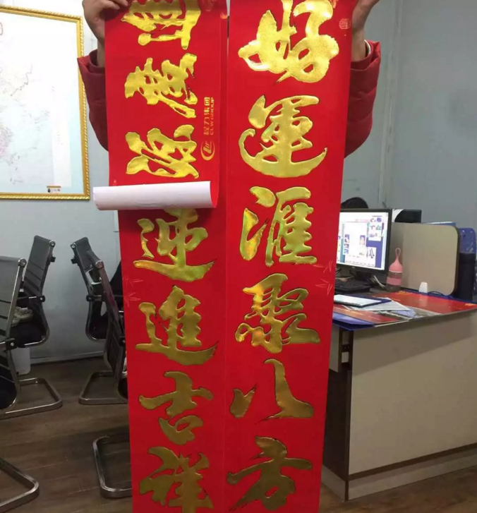 嗯嗯,這種植絨鎏金的高端對聯比我個子還高出一點點。