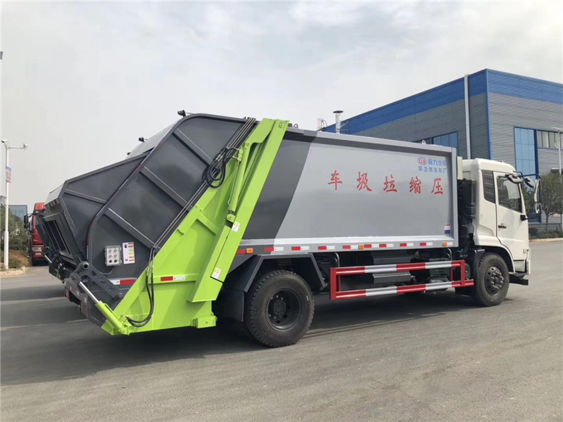 專用部分主要技術(shù)特點及產(chǎn)品描述: 1.垃圾箱:采用加強(qiáng)梁和鋼板焊接而成牢固的框架結(jié)構(gòu),實際容積最大為12-14立方,外形美觀,重量輕, 受力好,不變形;推鏟由鋼管骨架和折面板構(gòu)成,不僅結(jié)構(gòu)輕巧,又能使垃圾均勻分布,卸料干凈徹底;填裝器主要由填裝器殼體、滑板、刮板等構(gòu)件組成,各構(gòu)件采用受力良好的梁板或箱型結(jié)構(gòu),結(jié)構(gòu)牢固,重量輕;為了提高使用壽命,對箱體進(jìn)行了磷化防銹處理,并噴涂防銹底漆。2.液壓系統(tǒng):利用電控和液壓控制的優(yōu)點,通過控制轉(zhuǎn)換,保證了各機(jī)構(gòu)動作準(zhǔn)確可靠,提高了使用可靠性和效率;采用了先進(jìn)的液壓舉升安全回路。其原理是在液壓系統(tǒng)中的舉升油缸上設(shè)置了單向平衡閥。該閥隔斷了舉升油缸與液壓膠管的直接連接,即使油管爆裂,填裝器也不會突然落下造成惡性事故,提高了使用安全性。3.裝卸方式:箱體尾部翻轉(zhuǎn)架帶翻桶(斗)機(jī)構(gòu)裝卸,不會對操作人員造成污染。4.垃圾箱與填裝器之間采用特制橡膠條密封,密封性好,杜絕了二次污染。 湖北程力汽車國六東風(fēng)天錦12-14方壓縮垃圾車多方位圖片展示: