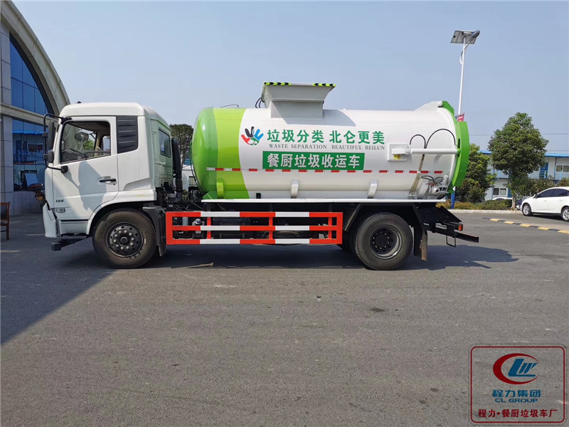 12立方東風(fēng)天錦餐廚垃圾車配置:手動(dòng)和電動(dòng)兩種操作方式,揚(yáng)州中梅多路換向閥,合肥長(zhǎng)源液壓油泵,國內(nèi)知名液壓油缸,翻轉(zhuǎn)機(jī)構(gòu)配備240L垃圾桶,后蓋開啟排料方式和罐體舉升排料方式。餐廚垃圾車裝載由垃圾桶提升系統(tǒng)完成,該系統(tǒng)具有垃圾桶鎖止結(jié)構(gòu),裝卸安全可靠。垃圾桶與垃圾投入口銜接好,保證裝卸過程中餐廚垃圾不溢撒、不遺漏。 液壓系統(tǒng)由泵、液壓閥和順序閥以及各種功能的液壓油缸、高低壓管路組成。關(guān)鍵部件可選用原裝進(jìn)口,保證產(chǎn)品工作可靠、安全。承載餐廚泔水容積為圓形罐體,工作時(shí)通過提升機(jī)將餐廚垃圾桶提升至罐體投料口;將桶內(nèi)垃圾倒進(jìn)罐體內(nèi),待罐體內(nèi)部垃圾積攢滿后,將車輛開至處理廠;通過車體外部手動(dòng)操作或駕駛室內(nèi)部電控旋鈕操作系統(tǒng)開區(qū)液壓后蓋,泄出罐體內(nèi)部的混合垃圾,待罐體內(nèi)部無固液垃圾流出后;操作罐體舉升功能將殘余垃圾泄出。為防止污染環(huán)境和遺留異味,每日工作完成后應(yīng)用清水將罐體內(nèi)部清洗干凈。