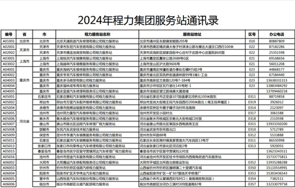 程力汽車北京、天津、上海、重慶、河北、山西服務(wù)站通訊錄: