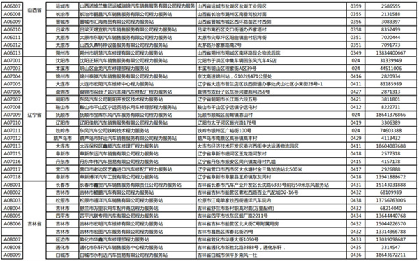 汽車山西省、遼寧省、吉林省服務(wù)站通訊錄: