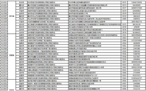 汽車浙江省、安徽省、福建省服務(wù)站通訊錄: