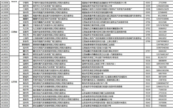 汽車福建省、江西省、山東省服務(wù)站通訊錄: