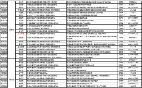 汽車河南省、湖北省服務(wù)站通訊錄: