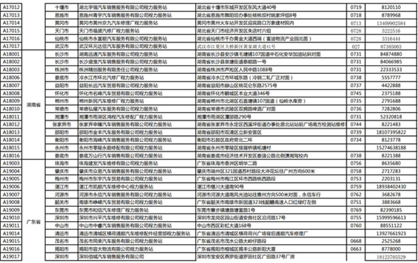 汽車湖北省、河南省、廣東省服務(wù)站通訊錄: