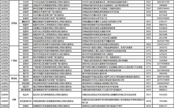 汽車甘肅省、廣西省、青海省、內(nèi)蒙省服務(wù)站通訊錄: