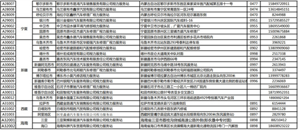 汽車內(nèi)蒙省、寧夏省、新疆省、海南省、西藏服務(wù)站通訊錄: