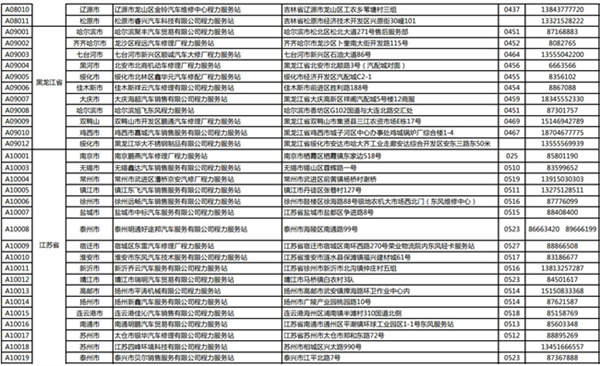汽車黑龍江省、江蘇省服務(wù)站通訊錄: