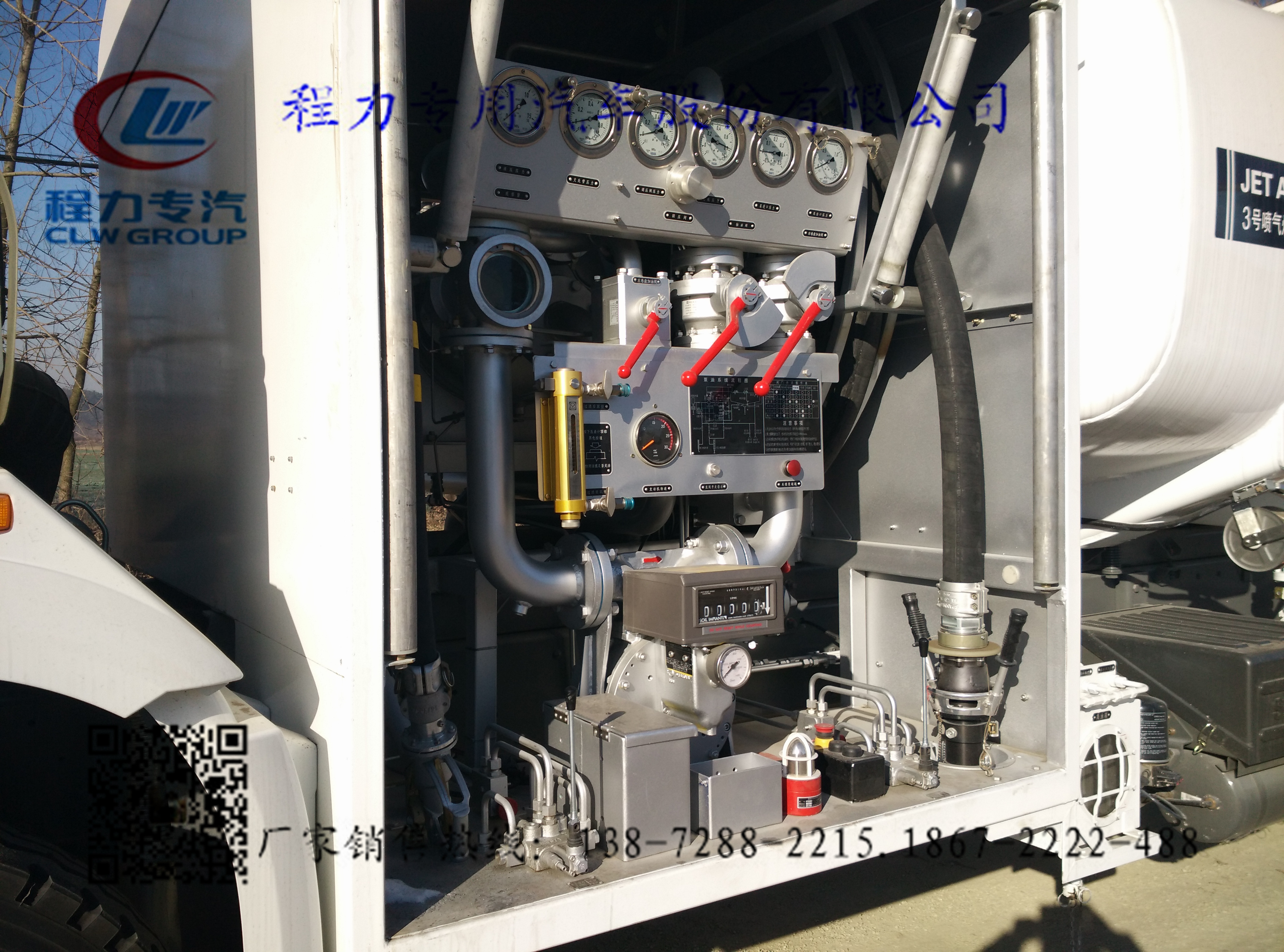程力第一臺飛機加油車面世:采用東風勁卡底盤,整車型號:CLW5072GJYD4型加油車,底盤型號:DFA1070SJ35D6,  實際容量:5方,總質(zhì)量:7.3噸,整備質(zhì)量:3.865噸,額定載質(zhì)量:3.24噸, 整車長度:5995*1960*2400mm, 軸距:3300mm,發(fā)動機采用4DW93-84E4一汽解放汽車有限公司無錫柴油機廠錫柴發(fā)動機,罐體采用4MM不銹鋼板制作。帶歐標罐口,導靜電線盤,專用油泵防溢漏探桿及插座,海底閥,浮球液位計,泵轉(zhuǎn)速表,泵進口真空表(接管),泵出口壓力表(接管),泵出口采樣閥,過濾后取樣閥,過濾分離器排污口取樣閥,取樣閥合并緩速筒,取樣器取樣回收油桶,YC-12型壓差計,閉路目測透明取樣器,高液位報警器,低液位報警器(帶開關(guān)),壓力可調(diào)式溢流閥,HYJ-63X接頭閥,80WGF-60/10過濾分離器,腰輪流量計,卷盤槍。