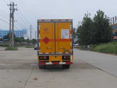 湖北程力專用汽車股份有限公司生產的爆破器材運輸車 廂體:為雙層金屬骨架結構,外部為冷扎鋼板,內壁采用鋁合金板蒙面,夾層為隔熱阻燃材料填充。設置對開門,如需安裝抗暴容器則增開側門,側壁設有防雨功能自然通風窗口,底部鋪有阻燃導靜電膠板,保證安全。廂體內部前面和側面裝有固定拉環,與捆綁帶使用捆綁貨物以避免移動。