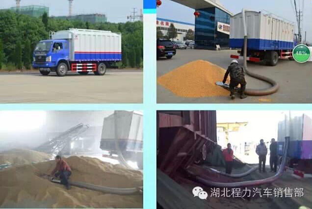 散裝糧食運輸車可對散糧自吸自卸,通過自帶高壓風機,可將散糧自吸到車廂中,不光對稻谷小麥吸取效果好,對玉米等大顆粒散糧,也能很好的吸取。該車自吸一車10噸糧食僅需30-40分鐘。且是通過風力輸送,對稻谷等不會造成破殼等損害,可有效保證稻谷出米率。該車也能快速自卸,糧箱底部裝有自卸油缸,可將散糧快速自卸,幾分鐘即可卸完。