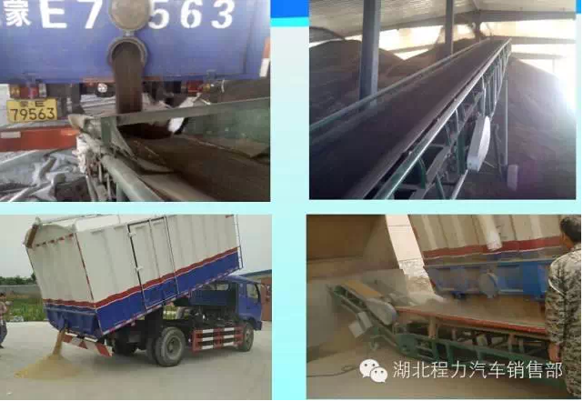 糧箱尺寸:4900×2250×1800(mm),實際容積20m³,有效容積18m³。糧箱材質:邊三底四。右側開一側門,尾部有大小兩個自卸口。