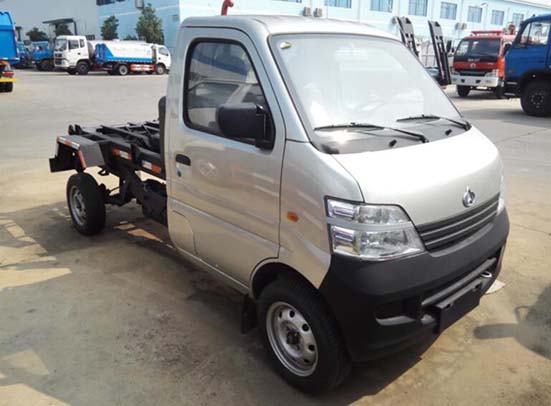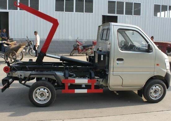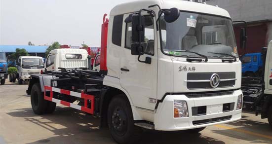 拉臂車廂可卸式垃圾車車輛性能:該車廣泛適用與城市街道學校垃圾處理,可一車配備多個斗,各個垃圾點放置多個垃圾斗,帶自卸功能,液壓操作,方便傾倒。該車的箱體部分完全由液壓系統來控制,在平日里可將車載垃圾箱放置到各個垃圾收集站,待垃圾收集滿后,該車可直接開赴至垃圾站,通過液壓系統的操控,可將垃圾車后座上加裝的勾臂放下,掛住站內垃圾箱前端的連接點,將垃圾箱拉至車體的后座上,此時即可啟動車輛,將垃圾運送至垃圾處理站內,進行自卸式傾倒。該車最主要的優點就是可一車配多斗,一輛車就可以維持數個垃圾收集站的運轉,效率高,且箱體為密封式設計,不會造成二次污染。