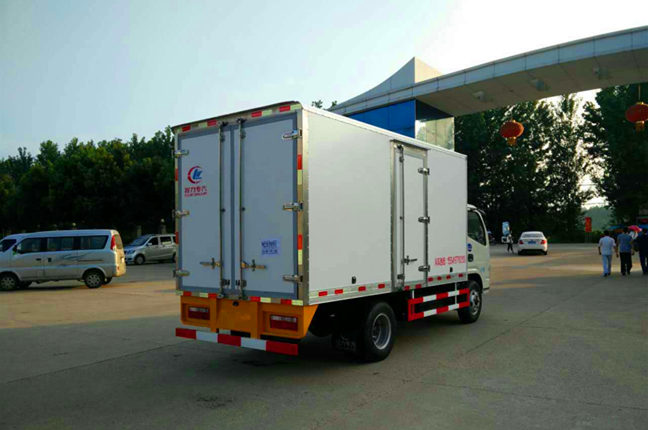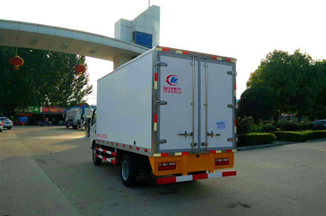 2.上裝配置:冷藏廂內部有效尺寸長4米×寬1.88米×高1.85米;13.6立方,廂體蒙皮內外玻璃鋼,花紋鋁底板,隨客戶選擇內置槽鋼焊接骨架或者玻璃纖維超輕高強度骨架,填充8cm聚氨酯保溫層,不銹鋼包角,不銹鋼門框,不銹鋼門鎖件,防滑花紋鋁底板,選裝T型材通風槽,導軌,肉鉤等輔助設施,配后雙開門,車廂右側可以加開側門,-5度或者-18度制冷機組可選