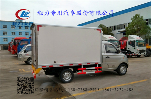 2.上裝配置:冷藏廂體內部有效尺寸:長2.795米×寬1.545米×高1.535米,廂體蒙皮采用內外玻璃鋼,隨客戶選擇內置槽鋼焊接骨架或者玻璃纖維超輕高強度骨架,填充8cm聚氨酯保溫層,不銹鋼包角,不銹鋼門框,不銹鋼門鎖件,防滑花紋鋁底板,配后雙開門,車廂右側可以選開側門-5~-18度制冷機組選裝導風槽,備用電源.