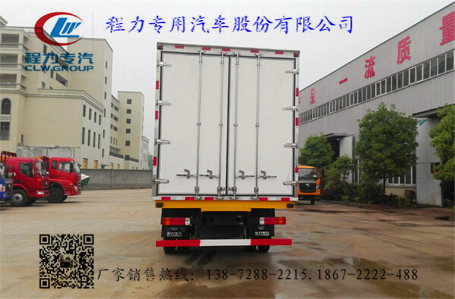 2.上裝配置:冷藏廂體內部有效尺寸:長6.8米×寬2.35米×高2.4米米,廂體蒙皮采用內外玻璃鋼,隨客戶選擇內置槽鋼焊接骨架或者玻璃纖維超輕高強度骨架,填充8cm聚氨酯保溫層,不銹鋼包角,不銹鋼門框,不銹鋼門鎖件,防滑花紋鋁底板選裝T型材通風槽,導軌,肉鉤,配后雙開門,車廂右側可以加開側門,-5~-18度非獨立制冷機組,選裝合資或者原裝美國進口獨立機組
