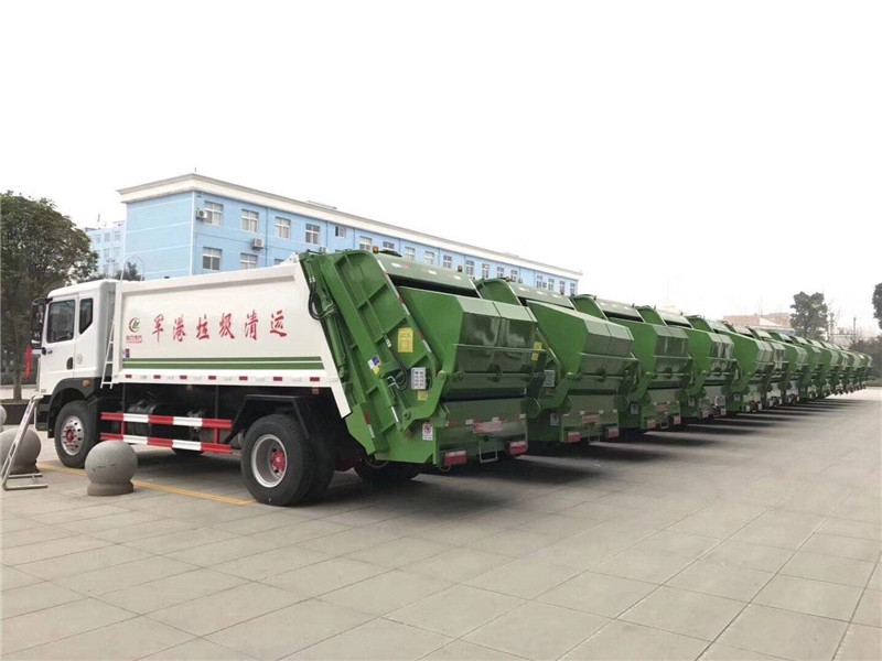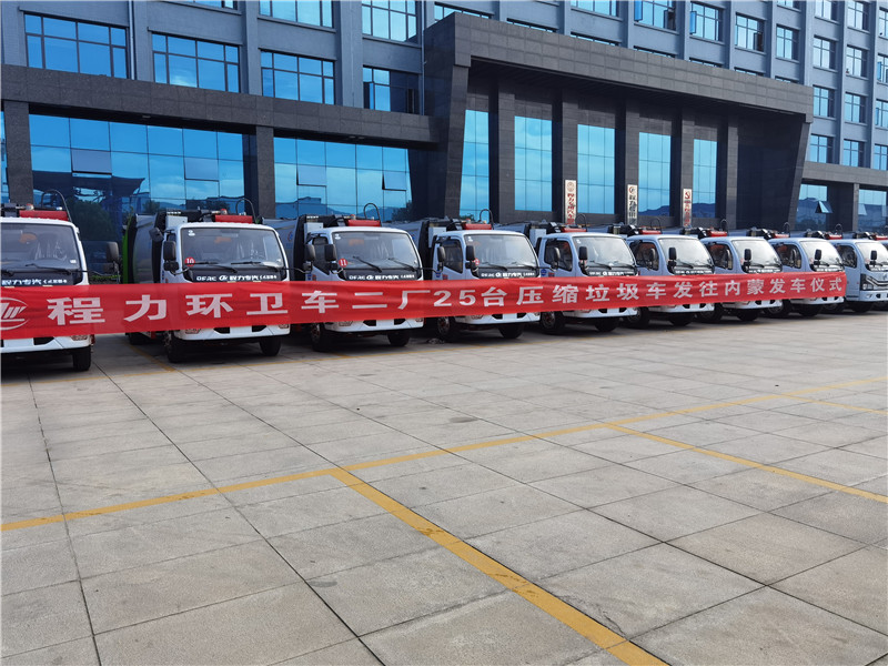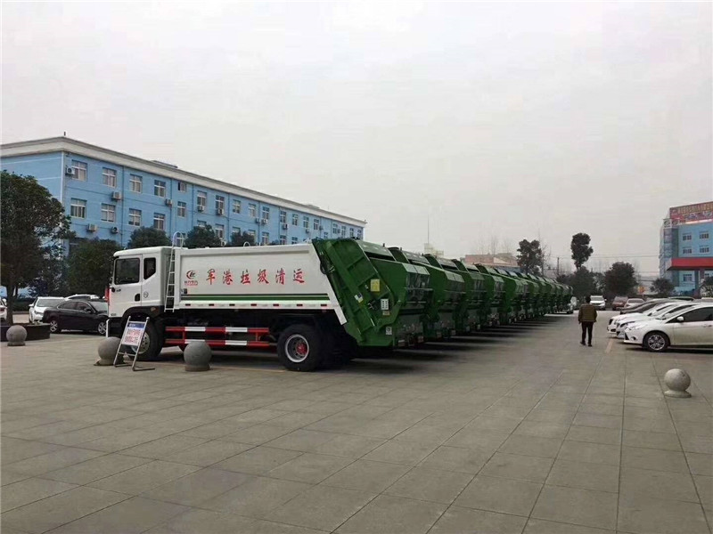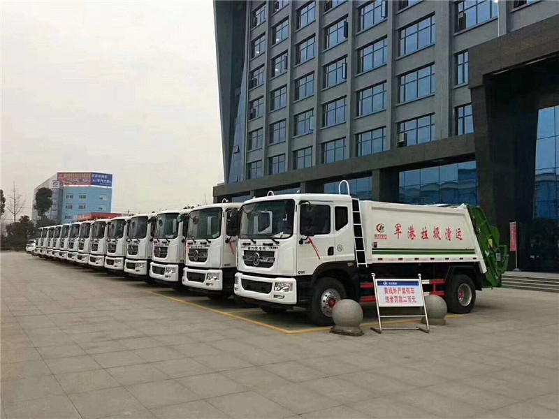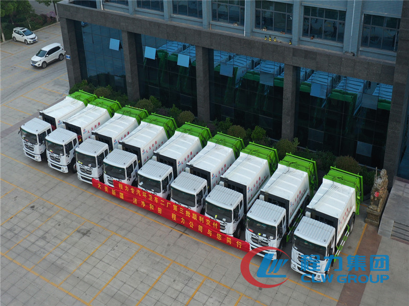 湖北程力批量環衛垃圾車壓縮垃圾車發車圖片,東風14方壓縮垃圾車批量發往新疆