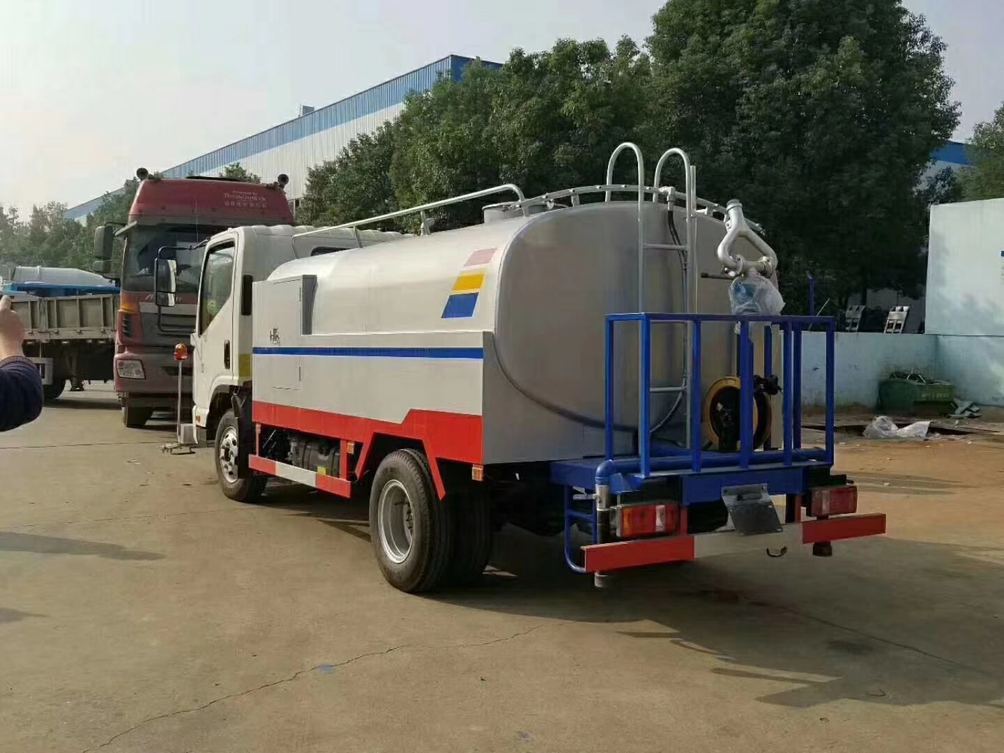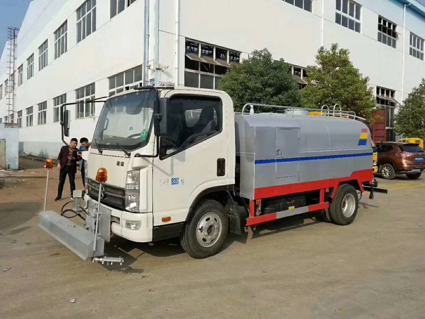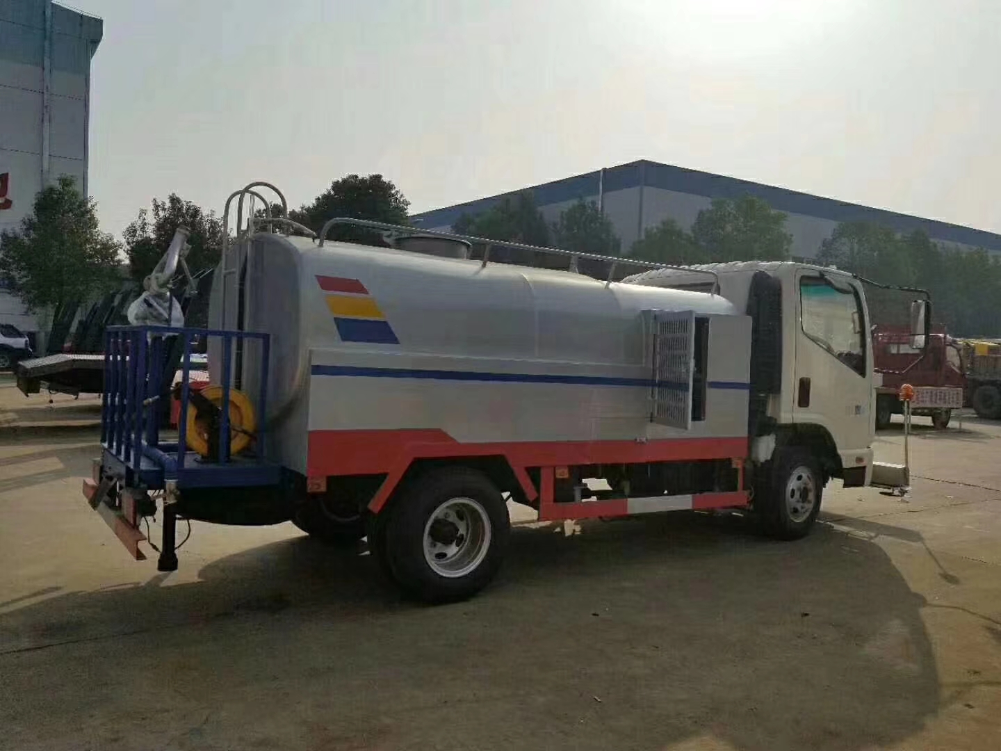低壓部分:采用大流量低壓灑水泵,泵可自吸自排 。帶前沖,后灑及后工作平臺(tái),平臺(tái)上可安裝綠化