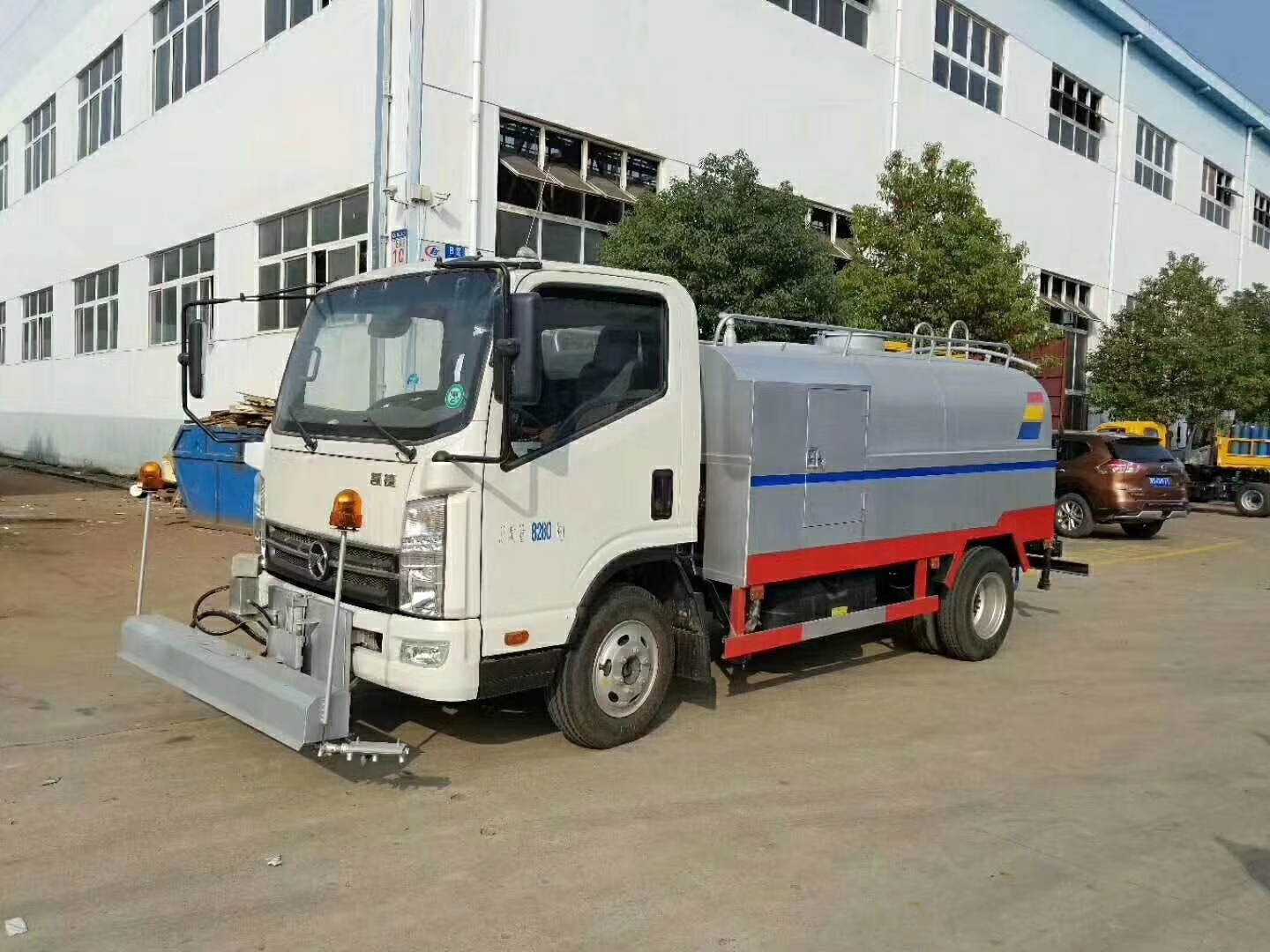 1.噴水架清洗寬度2.5m-3.5m,可任意控制,當(dāng)伸縮噴桿收縮時(shí),可實(shí)現(xiàn)雙重水流強(qiáng)化清洗,適用于清洗城市道路、廣場(chǎng);