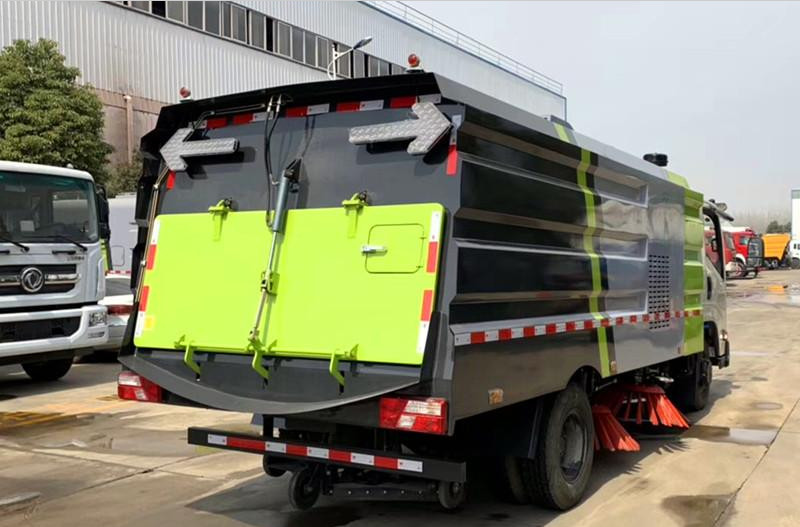 1、采用吸掃結合的方式收集垃圾,濕式除塵、電液控制,液壓傾翻卸料的作業方式對路面進行清掃作業。