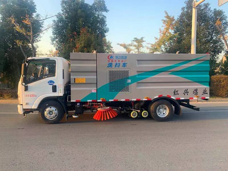 KV100P/KV600底盤配700P駕駛室:120馬力國六五十鈴4KH1CN6LB發(fā)動機配五十鈴5檔變速器,或132馬力國六4KH1CN6HB發(fā)動機配五十鈴6檔變速器,帶空調(diào),方向助力,多功能液晶儀表盤,前橋3噸,后橋5噸,帶ABS,斷氣剎(或者油剎),駕駛室可翻轉(zhuǎn),700副梁車型標配700R16輪胎車架幅高176MM,800副梁車型標配750R16輪胎車架幅高216MM。 湖北程力國六五十鈴8方洗掃車慶鈴五十鈴洗掃車配置: 1、帶2個中置掃盤;中置超寬吸嘴;江鈴64kW增壓副發(fā)動機;臺灣液壓閥;大力馬達;德國高壓水泵;威龍低壓泵;3mm不銹鋼垃圾箱;不銹鋼水箱;德國控制器;尾部箭頭燈;機油、垃圾箱、水箱均帶防溢或低位報警裝置;倒車及洗掃狀態(tài)室內(nèi)監(jiān)視器;多種語音提示;防傾倒垃圾翻車保護、檢修安全保護;20m高壓沖洗卷盤;刷臂轉(zhuǎn)動機構(gòu)使用德國進口高新耐磨工程隔套,免打黃油;精密冷彎無縫液壓油管;CAN總線運動控制器一鍵電腦控制。 2、洗掃寬度3.2m;吸入粒度φ110mm。 多功能洗掃車具有路面清洗、路面清掃、路緣清洗、路緣和路緣石立面洗刷、低壓沖刷、噴霧除塵等多功能。有“全洗掃”、“左洗掃”、 “右洗掃”、 “全掃”、 “左掃”、 “右掃”等多種作業(yè)方式可選擇。選擇“全洗掃”方式清洗廣場和路面,清洗效率高作用好,洗凈率達90%以上。選擇“左洗掃”或“右洗掃”方式清洗路面和路緣、洗刷路緣石立面。需求進行路面清掃或路面保潔作業(yè)時,可選擇掃路方式。需求噴霧除塵時,可敞開噴霧設備,進行噴霧除塵作業(yè)?梢韵駷⑺囅嗤瑢β访孢M行低壓沖刷作業(yè)。 湖北程力國六五十鈴8方洗掃車多方位圖片: 湖北程力國六五十鈴8方洗掃車多功能洗掃車適用于城市道路、高速公路、廣場、機場、碼頭、遂道、橋梁、隔絕墻面、路緣和路緣石立面的機械化清洗、清掃、噴霧降塵等清潔作業(yè)。