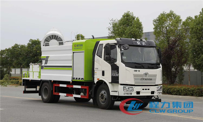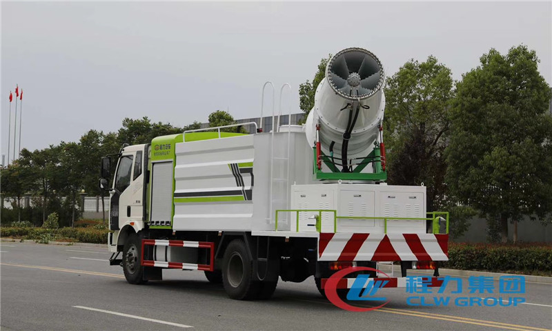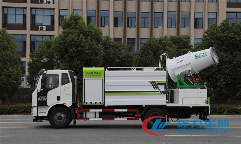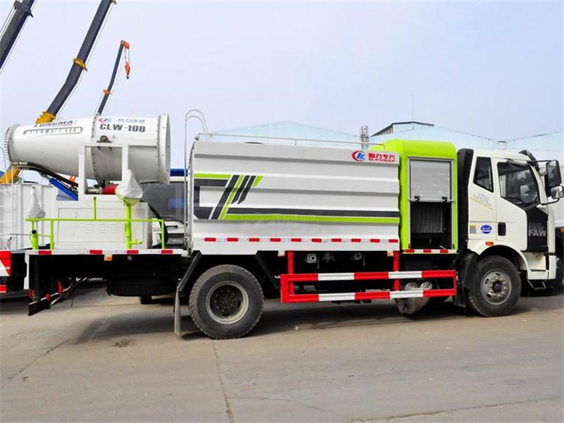 湖北程力國六解放J6單橋多功能抑塵車霧炮配置:霧炮射程從60米到120米,可隨意選擇,射程不同,價格不同,霧炮自帶柴油發電機組,標配100米以內遙控裝置,可360度遙控旋轉,達到全方位大面積精準噴霧,經環保部門測試,霧炮車可以將空氣中的PM10濃度降低20%左右,該車負載的大型霧炮噴霧流量平均每分鐘50-150升水,同樣10噸水,在霧霾天氣可以進行液霧降塵,將漂浮在空氣中的污染顆粒物迅速逼降地面,達到凈化空氣的效果。