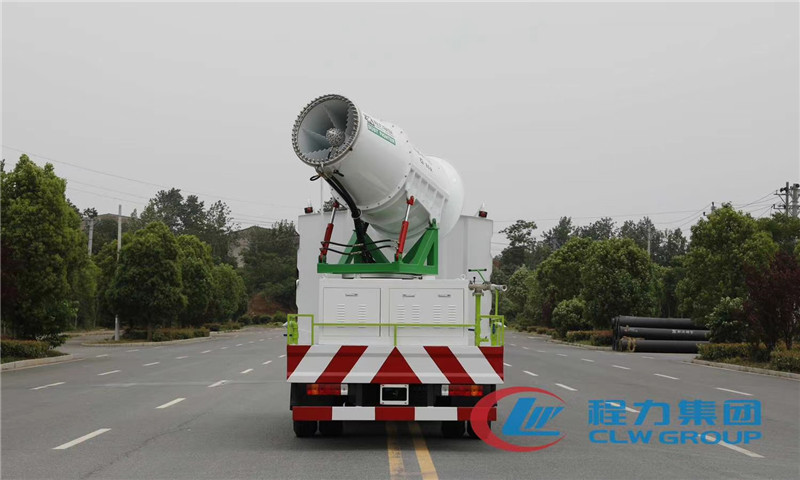 湖北程力抑塵車的別名也叫程力霧炮車因為其外形結構是尾部有一輛巨炮,所以霧炮車這個稱呼知名度會更高一些。我們需要先了解霧炮車是由電機、高壓風機、水平旋轉裝置、仰角控制裝置、導流筒、霧化噴嘴、高壓泵、儲水箱等主要部件組成。霧炮車也是在二類汽車底盤的基礎上經過了霧炮車廠家的改裝而成的。霧炮車的結構主要是汽車底盤、水罐、電控系統、和霧炮機幾大部分。圖中具體標識了各主要部件例如高端舒適性汽車底盤、壓力表及鍍鋅管道、變頻節能智能控制裝置、進口品牌高壓噴霧泵、無線遙控器、低油耗靜音發電機、大容量潔凈水箱、雙層風葉大風壓風機、風送式遠程噴霧機、高效霧化噴嘴、等主要部件的大致位置和布局,這也是一個霧炮車的組成結構的主要組成部分。