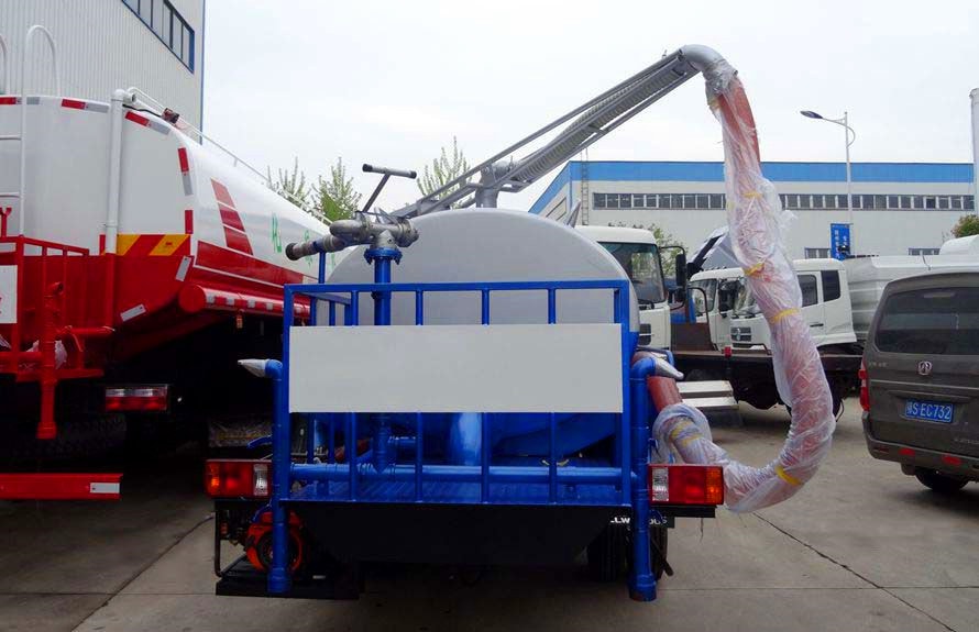 吸糞車罐體可采用:碳鋼、不銹鋼。吸糞車專用部分由取力器、傳動軸、真空吸污泵、高壓成型罐體、油氣分離器、吊桿、放糞閥、吸糞槍,管網系統組成,并裝有真空壓力表、視污窗(管),洗手裝置。公司生產的吸糞車安裝進口防溢流裝置,防止糞便、污水因吸滿倒灌至真空泵系統。吸糞導物管可360度旋轉,排放有加壓排放和自流排放兩種方式。