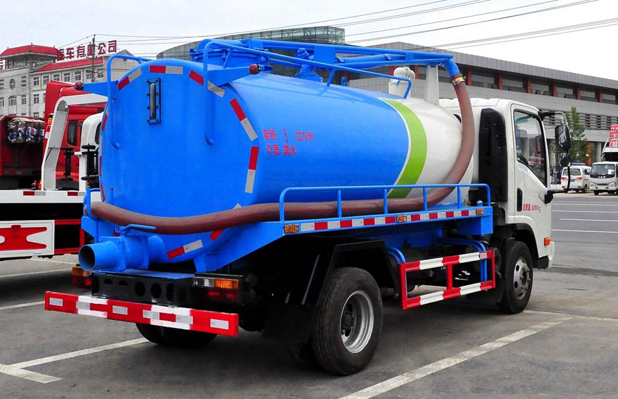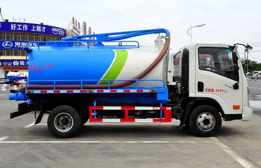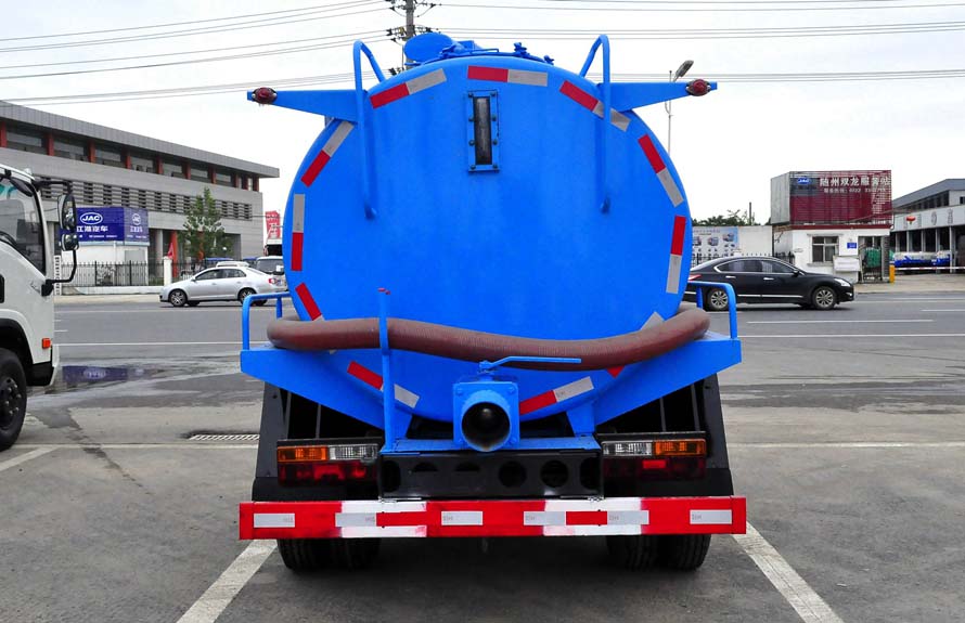 吸糞車專用部分由取力器、傳動軸、真空吸污泵、高壓成型罐體、油氣分離器、吊桿、放糞閥、吸糞槍,管網系統組成,并裝有真空壓力表、視污窗(管),洗手裝置。公司生產的吸糞車安裝進口防溢流裝置,防止糞便、污水因吸滿倒灌至真空泵系統。 吸糞導物管可360度旋轉,排放有加壓排放和自流排放兩種方式。