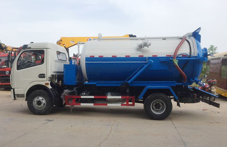 5】程力吸污車具有液壓舉升自卸功能,便于將各種污泥傾倒干凈。而且后罐門可以液壓自動開啟,便于清理罐體內的沉積物、凝固物及對罐體內部進行維修、保養。