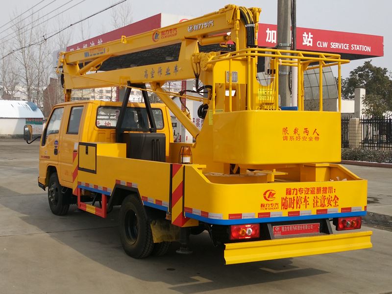 湖北程力高空作業車股份有限公司生產的高空作業車系列產品,釆用原裝底盤(日本技術)、帶空調、方向助力、平頭、雙排(或帶臥),可容納更多的作業人員。配置工作籃;帶電絕緣裝置,經受實戰檢驗,性能穏定可靠。主要用于電氣線路檢俢、高空作業清洗、樹木剪枝等高空作業使用。